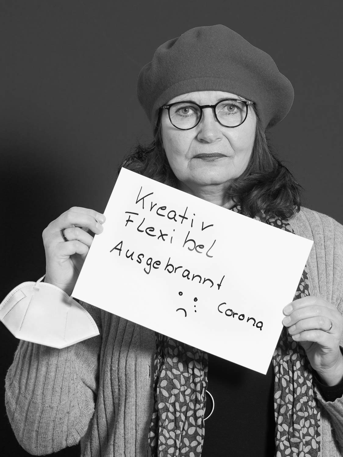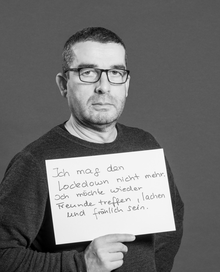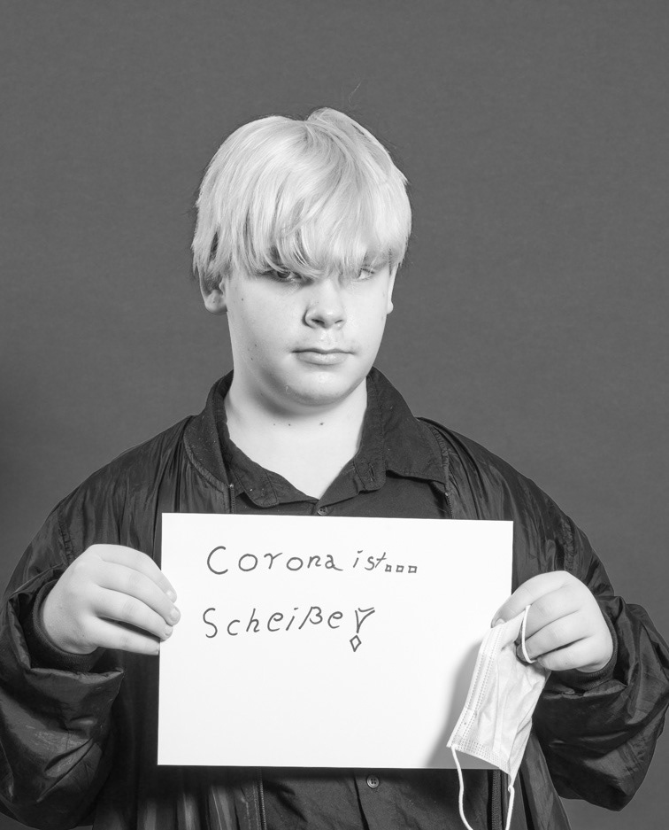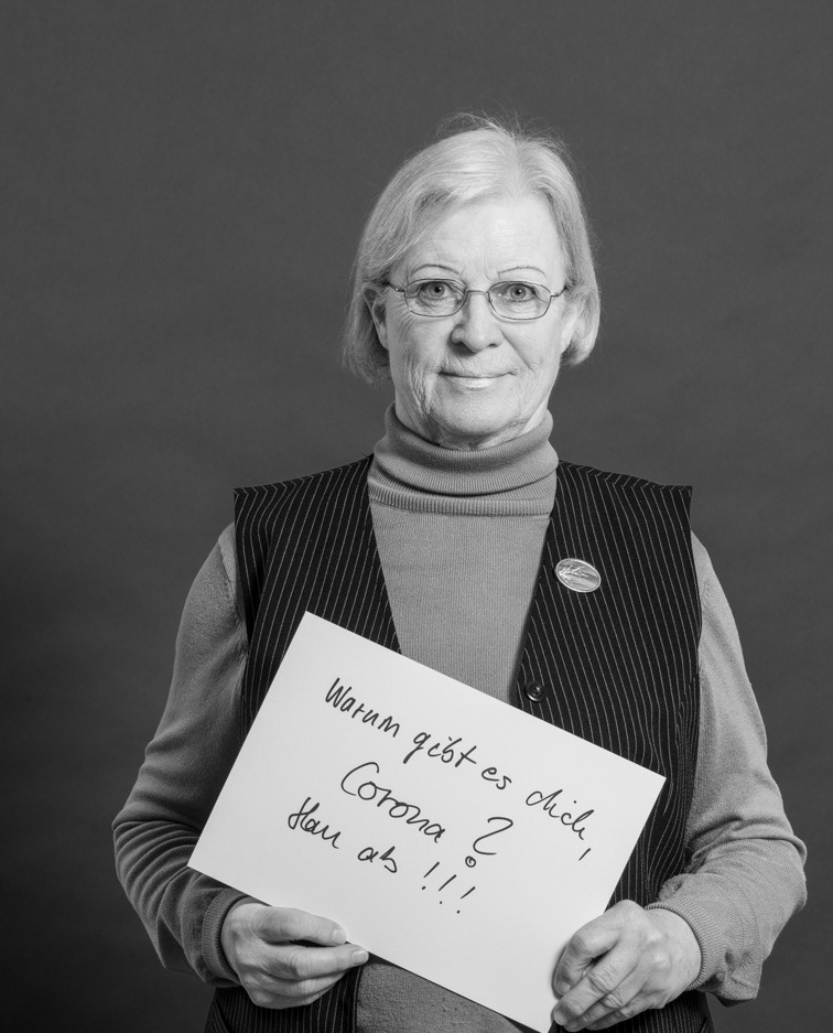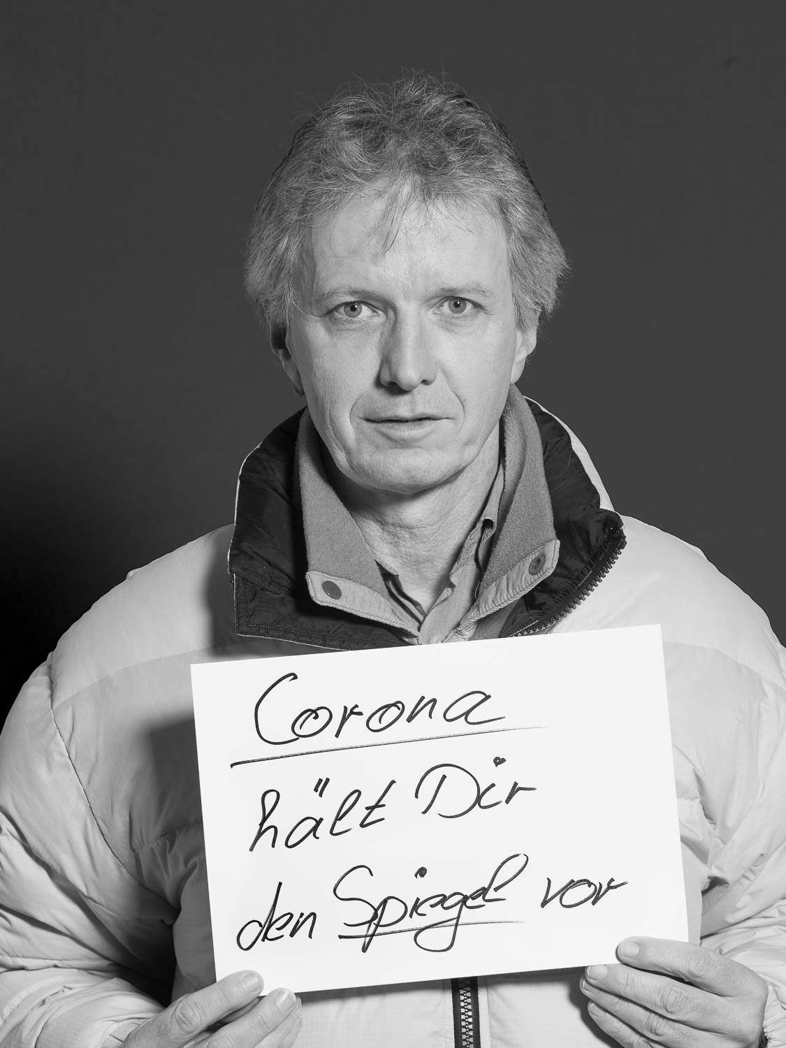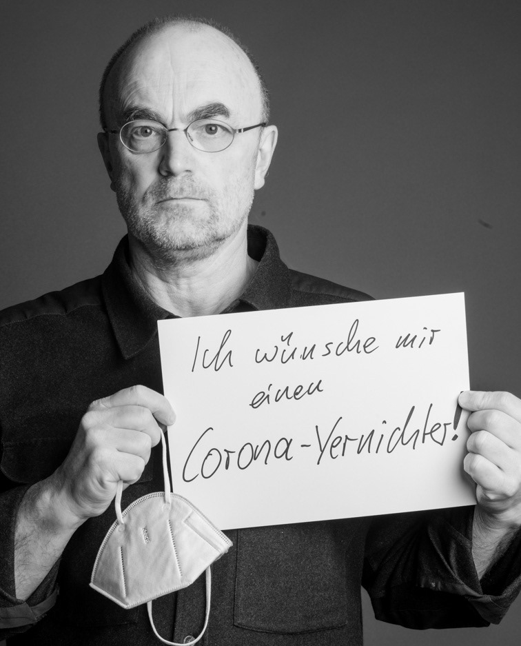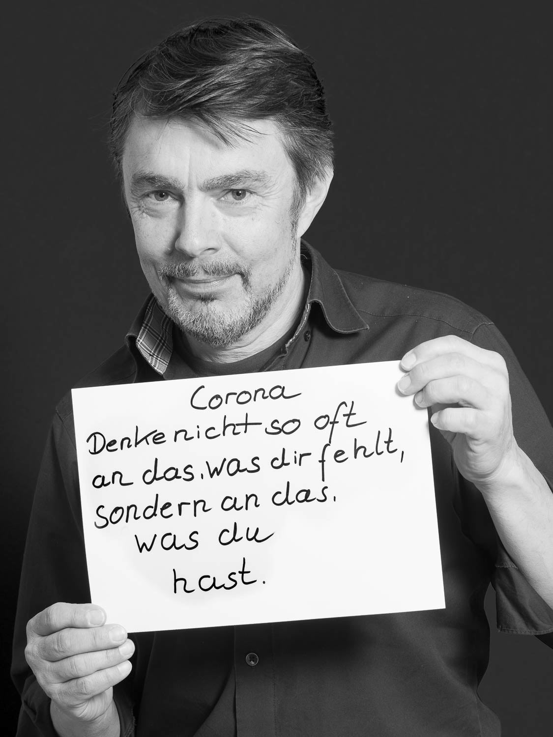 Über ein Jahr hielt die Pandemie die Welt bereits in Atem - und zwang jedem Einzelnen ein neues, ungewohntes Verhalten auf: Die Distanz zu anderen! Neben allen gesellschaftlichen und wirtschaftlichen Folgen herrschte die Isolation, oftmals die Sprachlosigkeit. Für eine eigentlich im April und Mai 2021 vereinbarte Ausstellung im Kunstverein Schöningen entstand als kleine, aktuelle Arbeit eine Serie mit über 80 Portraits von Bürgerinnen und Bürgern der Stadt, jeweils mit einem persönlichen Statement zur Pandemie. Die Ausstellung konnte nicht eröffnet werden, weshalb die Portraits in Schaufenstern leerstehender Ladengeschäfte in der Innenstadt gezeigt wurden.