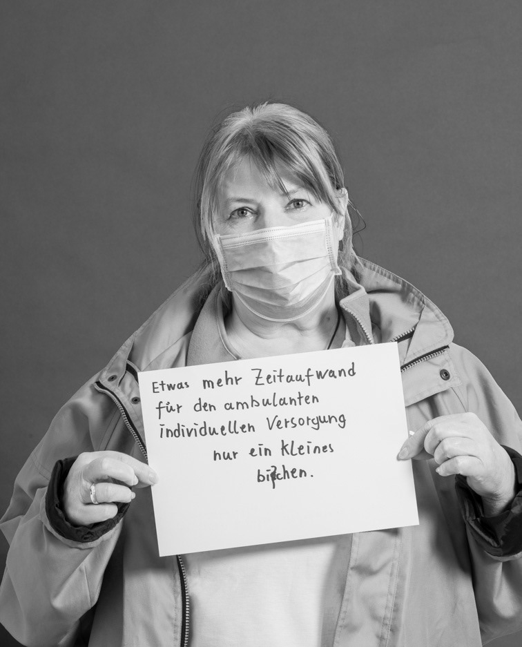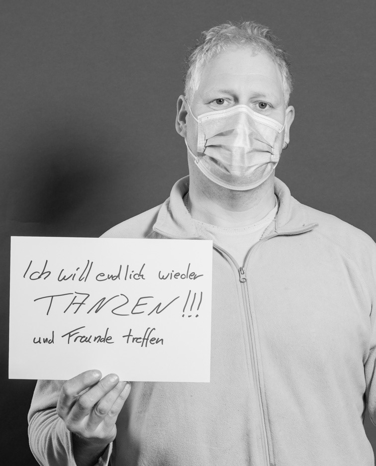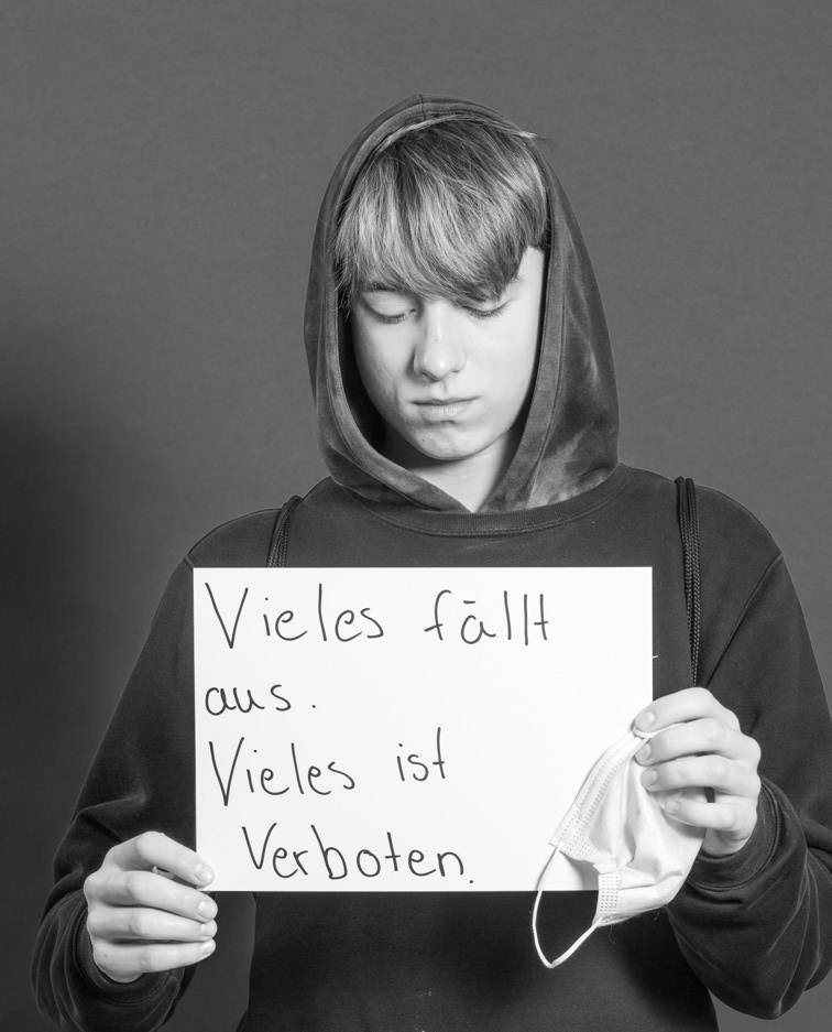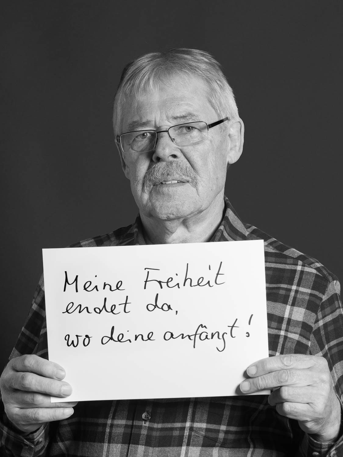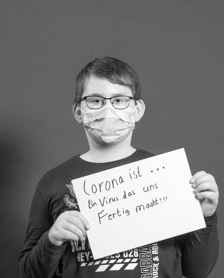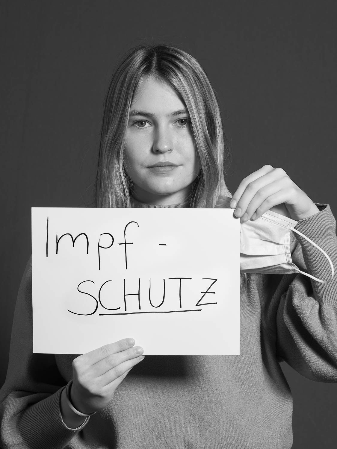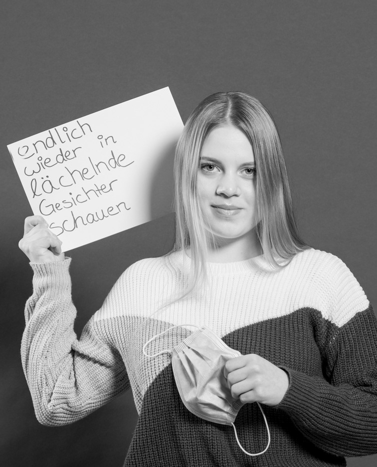 Über ein Jahr hielt die Pandemie die Welt bereits in Atem - und zwang jedem Einzelnen ein neues, ungewohntes Verhalten auf: Die Distanz zu anderen! Neben allen gesellschaftlichen und wirtschaftlichen Folgen herrschte die Isolation, oftmals die Sprachlosigkeit. Für eine eigentlich im April und Mai 2021 vereinbarte Ausstellung im Kunstverein Schöningen entstand als kleine, aktuelle Arbeit eine Serie mit über 80 Portraits von Bürgerinnen und Bürgern der Stadt, jeweils mit einem persönlichen Statement zur Pandemie. Die Ausstellung konnte nicht eröffnet werden, weshalb die Portraits in Schaufenstern leerstehender Ladengeschäfte in der Innenstadt gezeigt wurden.