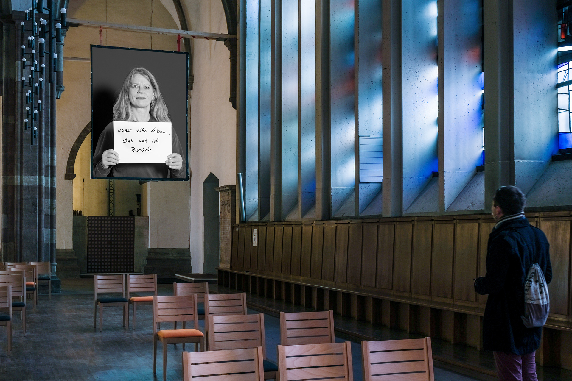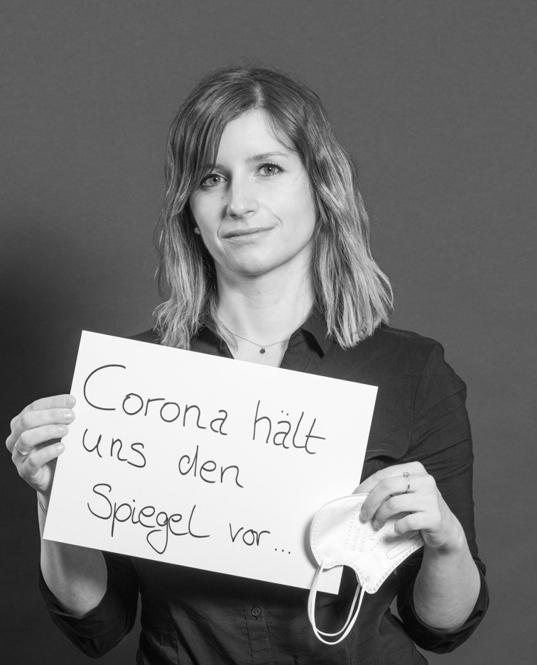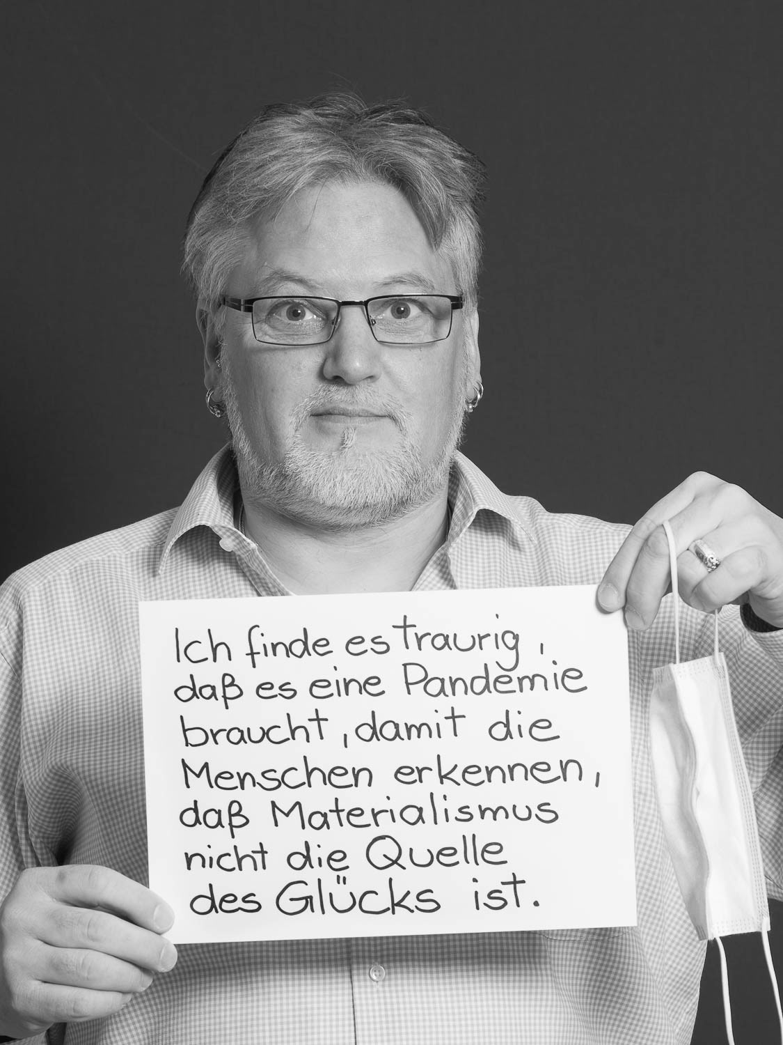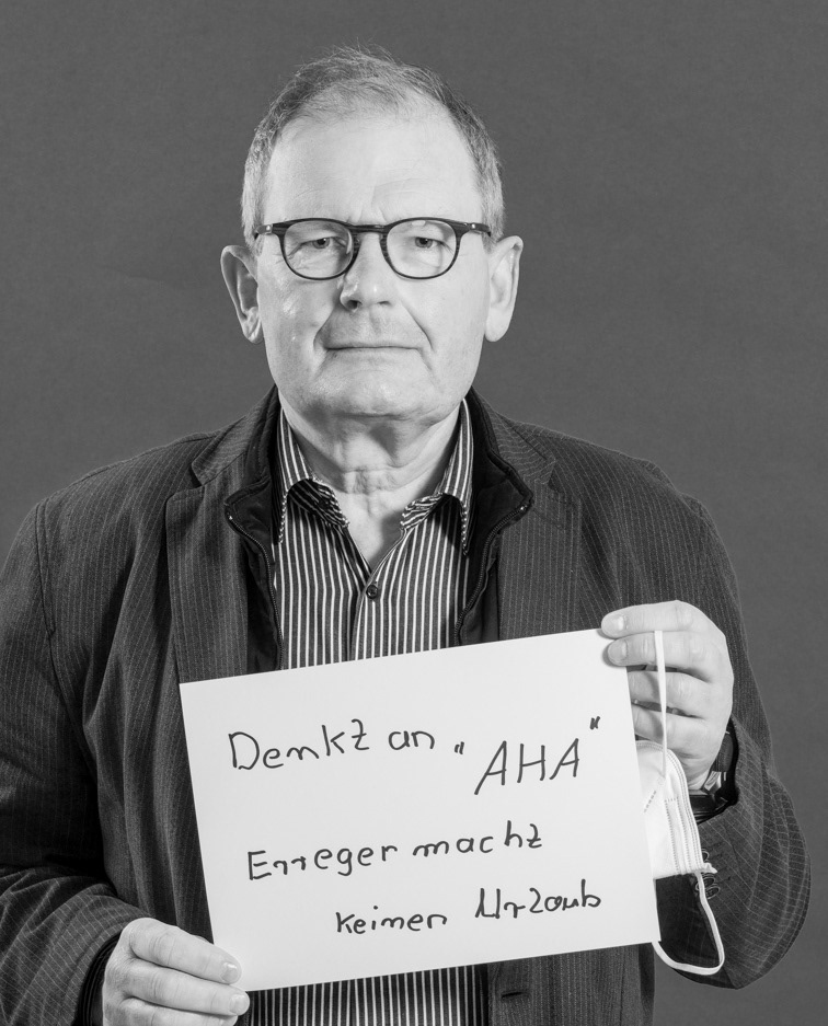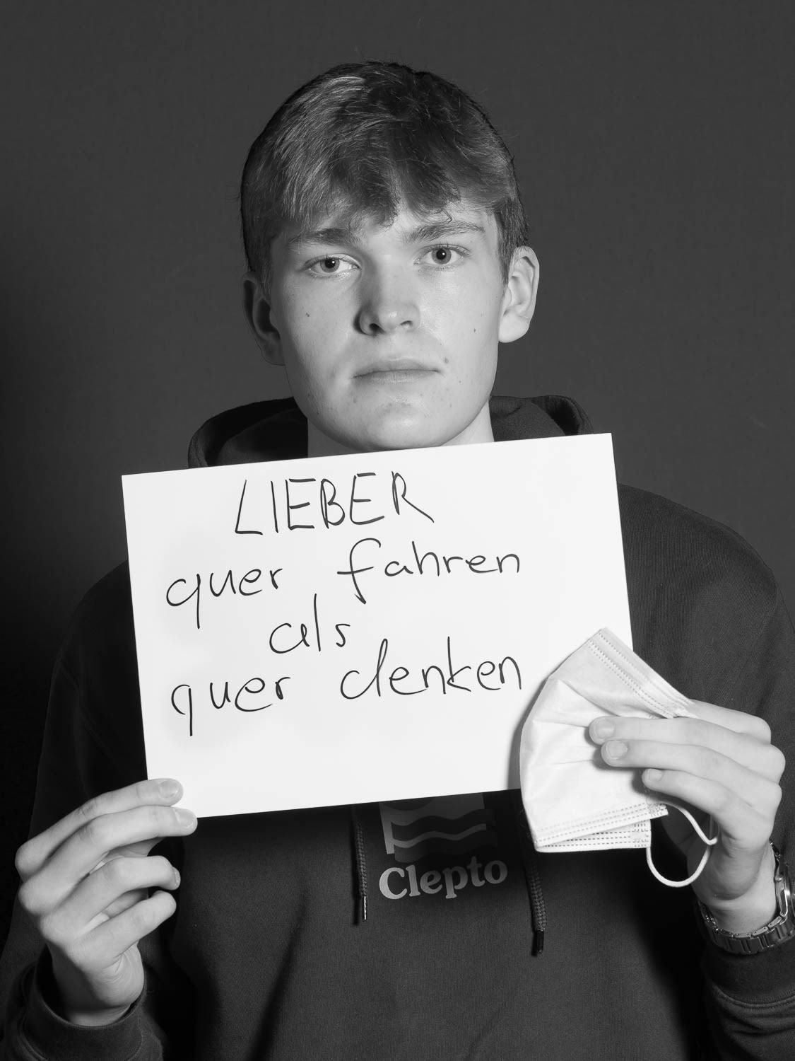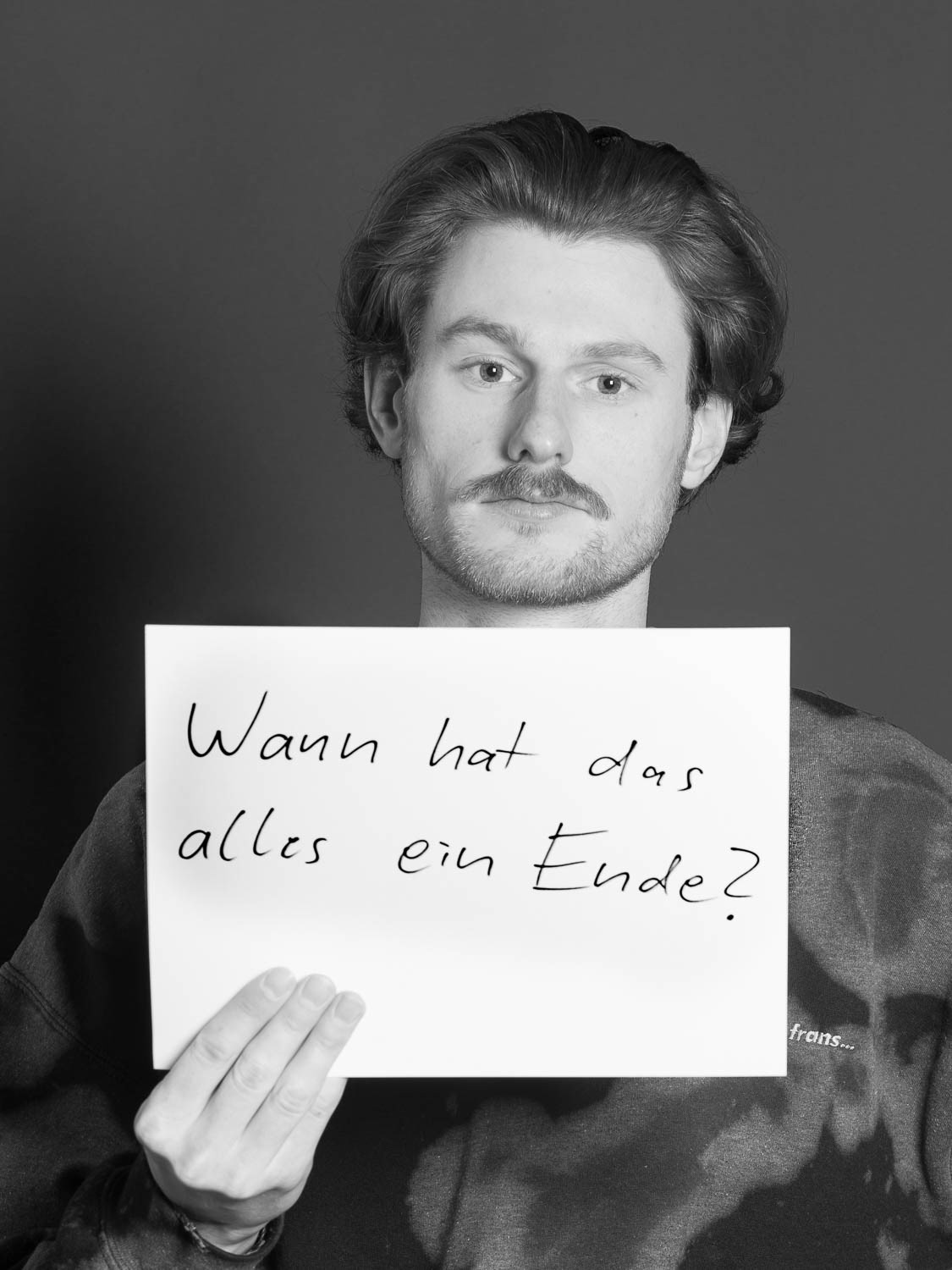 Über ein Jahr hielt die Pandemie die Welt bereits in Atem - und zwang jedem Einzelnen ein neues, ungewohntes Verhalten auf: Die Distanz zu anderen! Neben allen gesellschaftlichen und wirtschaftlichen Folgen herrschte die Isolation, oftmals die Sprachlosigkeit. Für eine eigentlich im April und Mai 2021 vereinbarte Ausstellung im Kunstverein Schöningen entstand als kleine, aktuelle Arbeit eine Serie mit über 80 Portraits von Bürgerinnen und Bürgern der Stadt, jeweils mit einem persönlichen Statement zur Pandemie. Die Ausstellung konnte nicht eröffnet werden, weshalb die Portraits in Schaufenstern leerstehender Ladengeschäfte in der Innenstadt gezeigt wurden.